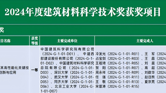 建研建材有限公司及其前身建筑材料研究所已圆满完成或正在承担的国家基金委、科技部、住建部、省市级研究课题总计超过200项,其中有相当一部分为重大课题,负责管理和主编我国建筑工程中有关建筑材料的标准和规范总计超过100部,积累了雄厚的科技实力和社会影响力,确立了在新型建材领域的科技先导地位,现为国家高新技术企业。